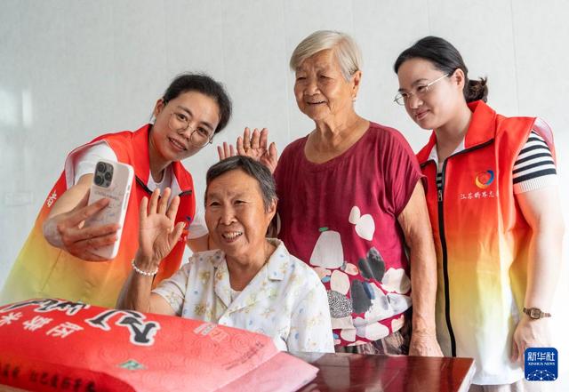 10月5日,江苏省南通市通州区金新街道界北村志愿者帮助老人与远在海外的子女进行视频通话,“云端”相聚,共迎中秋。