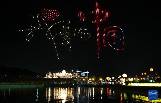 10月4日晚,在浙江省金华市武义县花田美地景区,精彩的无人机表演为游客呈现了一场视觉盛宴。