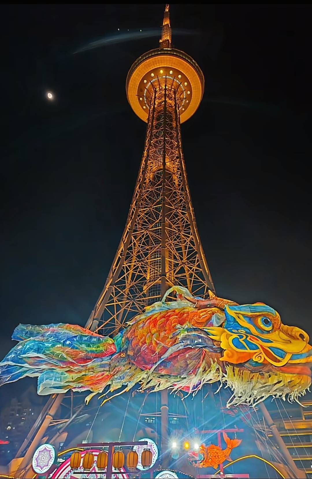 随后,极目新闻记者联系了制作鳌鱼花灯景观的公司。相关负责人李先生介绍,该鳌鱼花灯系非遗展示,历时两个多月完成制作。鳌鱼花灯整体长30米,高度和宽度均为8米,其没有自带灯源,晚上由外置灯光照射点亮。